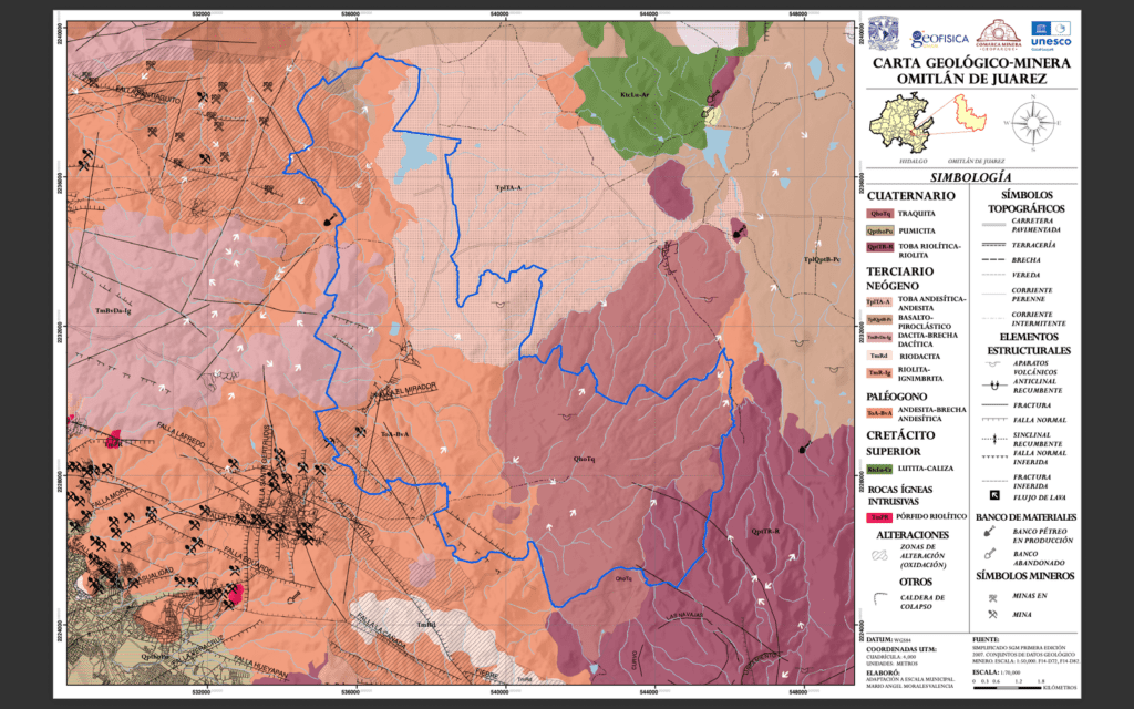 Interactive Geotourism Map Interactive Geotourism Map Download here Geologic Map of Atotonilco el Grande, Hidalgo Download here Geologic Map of Epazoyucan, Hidalgo Download here Geologic Map of Huasca de Ocampo, Hidalgo Download here Geologic Map of Mineral de la Reforma, Hidalgo Download here Geologic Map of Mineral del Chico, Hidalgo Download here Carta geológica Mineral del Monte, Hidalgo Download here Geologic Map of Omitlán de Juárez, Hidalgo Download here Geologic Map of Pachuca de Soto, Hidalgo Download here Geologic Map of Singuilucan, Hidalgo Download here