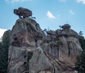 he site exhibits an effusive volcanic event with the formation of volcanic domes in the Pliocene, with rocks of andesitic and rhyolitic composition; in this geosite the contrast between a coniferous landscape and the presence of rural and urban populations can be appreciated, which have given rise to a very important cultural heritage for the inhabitants of this site, and have made it possible for the beauty of these peculiar forms to coexist with their populations within El Chico National Park.